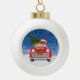 Chow Chow Dog Driving Car In Snow Ceramic Ball Christmas Ornament