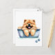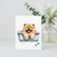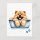 Cute dog watercolor illustration of a happy fluffy Chow Chow dog in a bathtub. Great for dog lovers.