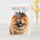 This cute Chow Chow dog has been crowned with a botanical delight fit for a queen on this funny birthday card for the Chow mom or lover of the breed.