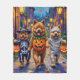 Adorable Chow Chows dressed in playful Halloween costumes carry pumpkin buckets while trick-or-treating under the moonlit sky. This festive design highlights the breed’s fluffy coat, lionlike mane, and dignified personality, perfectly capturing the spooky yet cheerful atmosphere of Halloween night. A delightful celebration for dog lovers and Halloween fans alike.