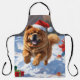 Chow Chow Running in Snow with Christmas Hat Apron