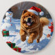 A fluffy Chow Chow runs joyfully through the snowy winter scene, wearing a festive red Christmas hat. This charming design highlights the breed’s thick coat, lion-like mane, and dignified personality while capturing the warmth and spirit of the holiday season. A heartwarming winter moment full of festive charm.