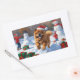 Chow Chow Running in Snow with Christmas Hat Rectangular Sticker