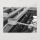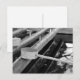 A black and white photograph of the ladles and water basin, known collectively as the chozuya or temizuya, used to purify the mouth and hands before entering a Shinto shrine.