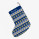 Personalize this Chrismukkah stocking in a fun stripes pattern of two shades of blue and gold Menorah and Christmas trees for a one of a kind holiday gift. Add a name or clear/delete to erase the text if you prefer a plain stocking. Both the gold tree and gold Menorah graphics are simple enough that this blue stripped stocking can work for Christmas, Hanukkah and Chrismukkah! Family members of all ages will enjoy this personalized stocking - a perfect addition to blended families creating their own unique traditions.
