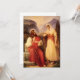 Vintage illustration religious Christianity fine art painting featuring a young man, Jesus Christ, speaking with a lady. Christ and his disciples traveled northward through Samaria where he stopped at Jacob's well and spoke with a woman, a good samaritan.