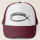 "Jesus Fish" (otherwise known as the Ichthys), which has a cross for an eye. Text above reads "Christ Is King".