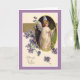 A pretty vintage Easter card. A golden haired angel within an oval. Purple violets to left of the oval and below "Christ is Risen" in gold. Purple border