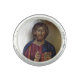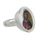 This ring features a traditional Eastern Orthodox icon of The All-Ruling Christ (Pantocrator in Greek). The original work was painted in Byzantine style with egg tempera and vinyl paints on a gold leafed wood panel.