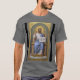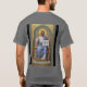My 11 yo wore adult XL (5’7” 165#). The 8yo is small framed. She wore adult small and tied it in the back. Grandma wore adult large with long sleeve shirt underneath. Tall girl adult medium. Dark haired male adult large. Good quality dark Heather gray, Gildan brand shirt. -it was next up from basic choice and cost about $20 per shirt. Not too thick or thin. Washed and dried well, no major shrinkage. Not see-through. Can wear a bra under it fine. Screen print is just as shown and well done, front and back.