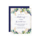 On the front: A white background decorated with eucalyptus greenery and golden leaves and faux gold glitter sparkles. A golden cross. Personalize and the child's name and ceremony details.
