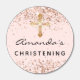 For a christening, baptism celebrating a baby girl. A rose gold background color. Decorated with rose gold confetti and a golden cross. Personalize and add a name.