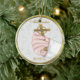 A beautiful keepsake ceramic ornament for baby's christening or baptism. Design features baby's hand holding gold cross on lace background with gold look frame. Easy to personalize for your special occasion.