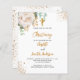 For the christening of 2 two children. A white background decorated with eucalyptus greenery, a white rose, and golden leaves and faux gold glitter drops. Personalize and the childrens names and ceremony details. Black and golden colored letters. Gender neutral.