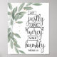 Customer specific, floral "Act justly love mercy, walk humbly. Micah 6:8" Poster.