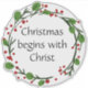 Christian Christmas Scripture Sticker Scripture with red, green Holly wreath Christmas begins with Christ