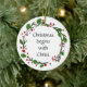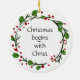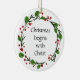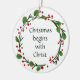Christian Christmas Scripture Sticker Scripture with red, green Holly wreath Christmas begins with Christ