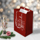 Christian Christmas Verse Typography Holiday Gift Bags featuring Luke 2:11 in festive typography on a rustic red background, with quaint flourishes of white pine branches and pine cones.