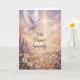 Bring comfort and gentle encouragement to someone walking through a difficult season with this elegant Christian sympathy card. Featuring a serene white dove ascending beside a softly glowing cross, the design symbolizes peace, hope, and the promise of God’s eternal presence. This card offers a warm, uplifting message that honors both faith and remembrance. On the inside, you can customize the text by providing your own Scripture verse and message, making it a meaningful keepsake for anyone grieving a loss. Perfect for church ministries, pastoral care, or personal outreach, this card serves as a tender reminder that God’s love brings light even in the darkest moments.