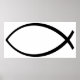 This design features a traditional symbol of Christianity called the Ichthys, which is the Greek word for "fish" (ἰχθύς). The symbol consists of two intersecting arcs (curved lines): the ends at the right side extend beyond the point where they meet, resembling the profile of a fish. The fish was adopted by early Christians as a secret symbol when they were persecuted. The symbol also makes reference to the Holy Eucharist and the miracle of the multiplication of the loaves and fishes. It is now known colloquially as the "sign of the fish" or the "Jesus fish".
