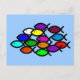 A school of Christian fish symbols in rainbow colors all swimming in one direction united with one purpose.