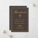 Send your family and friends an elegant Christian graduation announcement featuring a brown background with faux gold calligraphy and cross bordered by a thin gold frame. Personalize with your graduation details. Designed by Susan Coffey.