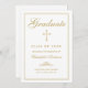Send your family and friends an elegant Christian graduation announcement featuring a white background with faux gold calligraphy and cross bordered by a thin gold frame. Personalize with your graduation details. Designed by Susan Coffey.
