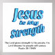 Be encouraged by the Word of God Psalm 29:11 NIV "The Lord gives strength to his people;the Lord blesses his people with peace." is Printed on the bottom our our design Jesus is My Strength.