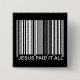 Christian Jesus Paid It All Salvation Bar Code UPC Button