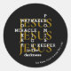 Christian JESUS Waymaker Classic Round Sticker, with some of the popular descriptions of the Lord JESUS displayed in a crossword format in bold white typography. In the background, the Name of Jesus is repeated three times in dark gold colored serif font. Underneath the design there is curved placeholder text, which is customizable, so you can add your name and initial or create your own text. This would make a great gift for birthdays, Christmas, and for anyone who loves the following inspirational quotes based on Bible Scripture: God will make a way in the desert; God always keeps His promises; Jesus is the Light of the world, and God is One who works miracles. Also available in white.