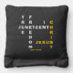 Christian JUNETEENTH Cornhole Bags in crossword format. Stylish JUNETEENTH design with Christian Bible reference, showing the inspirational quote TRUE FREEDOM IN CHRIST JESUS in a crossword format including JUNETEENTH. The main text is based on the Scripture reference from John 8:36 - HE WHO THE SON (JESUS) SETS FREE IS FREE INDEED. The Bible reference JOHN 8:36 is CUSTOMIZABLE, so you can replace the text with your INITIALS or NAME. These Juneteenth Cornhole Bean Bags would make a great addition to your Juneteenth cornhole set and impress your guests at your cultural events. Be prepared to share your faith, as this would also make a great conversation starter.