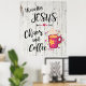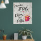 Brighten Your Home with this Unique "One of a Kind" Christian Poster! It Features the Comical Christian Quote..."I Run On Jesus, Chaos and Coffee"... and a Pink Coffee Mug with Steaming Hot Coffee...Surrounded by Colorful Flowers and Hearts!