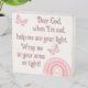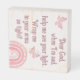 Monogrammed for you to insert your own prayer if you so choose, wooden box sign. This cute boho theme with a pink rainbow and butterfly, and dark pink text on a white background, states, Dear God, when I'm sad, help m see your light. Wrap me in your arms so tight!