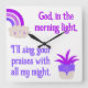 Monogrammed for you to insert your own prayer if you so choose, wall clock. This cute boho theme with a purple and blue rainbow, flower and text on a white background, states, God, in the morning light, I'll sing your praises with all my might.