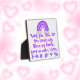 Monogrammed for you to insert your own prayer if you so choose, plaque. This cute boho theme with a purple and pink rainbow with clouds, and purple text on a white background, states, Thank you, God, for this lovely day. Bless my family, keep us safe, I pray.