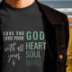 Christian T-shirt with quote from Matthew 22:37 "Love The Lord Your God With All Your Heart And With All Your Soul And With All Your Mind." in mixed calligraphy & minimalist typography. This trendy, modern faith design is the perfect gift and fashion statement. #christian #religion #scripture #faith #bible #jesus