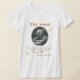 My overall review is that the T-shirt is nice, it fits true to size however the font is significantly smaller than advertised and you can't read it. The printing is unreadable and there is a strain to read it. It does not look like the advertised product. Maybe the shirt color is darker or a larger more visible font should have been used. Photos with and without flash and font is barely legible.