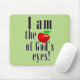 I am the apple of god's eyes mouse pad with red apple illustration and text. Christianity saying and quotes mouse pad