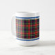 Coffee mug with the tartan for Clan Christie and its septs, including Christopherson and Crystal. Colorful bright red, royal blue, and green Scottish plaid pattern from 1986, with yellow, white, and black accents.