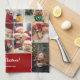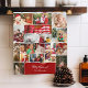 Christmas 22 Photo Collage with Family Name Red Kitchen Towel