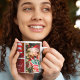 Celebrate the holiday season with this modern, personalized coffee mug. Mug features room for five of your favorite family photos. There's also an area with a red background and the greeting Merry Christmas (which may be edited) and your family name.