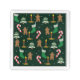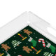 Green christmas design with christmas trees, candy canes, christmas stockings and gingerbread men cookies.