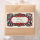 A intricately designed Christmas-themed address label, with Victorian elegance and a red-black color palette. The card features intricate black ink illustrations of various Christmas elements. This detailed image is a digital illustration that showcases a perfect balance of joyful and tasteful design. The black ink creates a sense of mystery and sophistication.