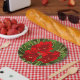 Perfect for holiday gatherings, this cheery red amaryllis adorns your disposable plate.