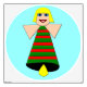 This awesome wall decal features a pretty Christmas Angel with blonde hair, blue eyes and a big smile. Her body is a festive green and red coloured bell with a yellow clapper at the bottom.