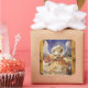 Elegant and classic design elaborated from a Renaissance painting. Melozzo da Forli ,musical angel in blue pink colors,detail of a fresco c.1480 with old brown parchment effects.