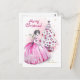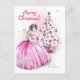 Very sweet and girly Christmas design of an female angel in a pink dress in front of a colorful Christmas tree with giftboxes underneath