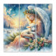 This enchanting scene captures a tender Christmas angel cradling a peaceful lamb against a glowing winter sunrise. Surrounded by a snowy forest, evergreen branches, and delicate holly adorned with berries and poinsettias, the image evokes a deep sense of serenity and spiritual warmth. Soft pastel tones blend with radiant light and starry skies, highlighting the angel's flowing gown, feathered wings, and gentle expression. White doves soar overhead while distant lambs graze across a frost-kissed field, enriching the overall sense of calm and holiday reverence. Ideal for evoking feelings of divine comfort and the quiet magic of a spiritual Christmas, this ethereal winter scene blends elements of peaceful nativity and holiday tranquility. Designed to inspire and uplift, this composition brings a timeless message of peace, innocence, and grace. AI generated artwork.