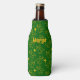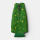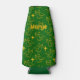 This bottle cooler has a Christmas design of angels and stars scattered about the design on a green background.