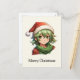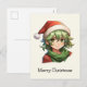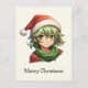 Cute portrait from a Christmas elf with green hair in anime cartoon style